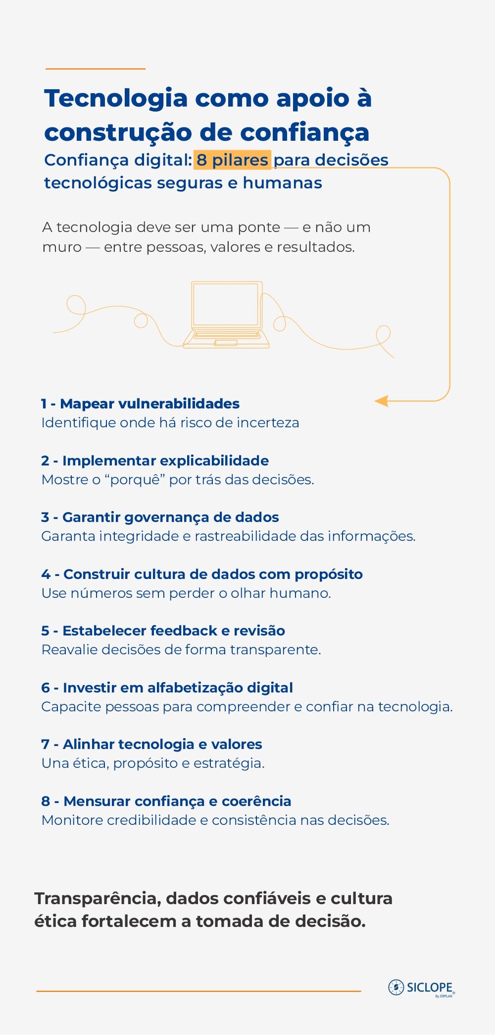 🤝 Alinhar tecnologia, valores e estratégia — garantir que o uso de dados e ferramentas tecnológicas respeite princípios éticos, fortaleça a cultura da confiança e gere resultados sustentáveis.