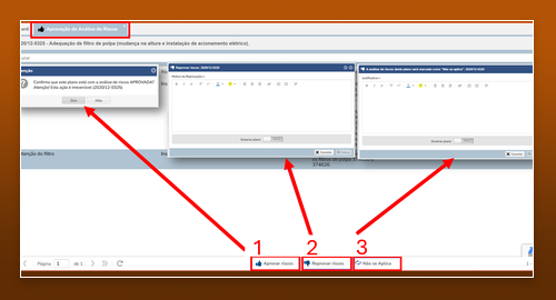 Na tela de aprovação de análise de risco, o aprovador agora dispõe de três opções: APROVAR, REPROVAR e NÃO APLICÁVEL. Caso aprove o risco(1), este seguirá normalmente. Se reprovar(2), será necessário justificar a reprovação no campo destinado a esse fim.Além disso, foi incluída a opção “Não se aplica”(3), na qual o aprovador deve informar o […]