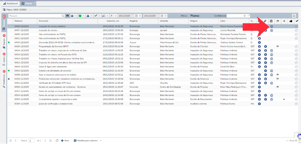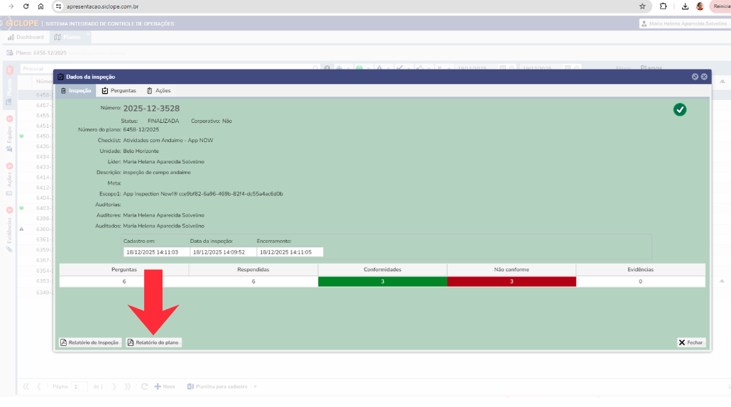 Foi incluído a possibilidade de visualizar o relatório de planos diretamente da tela de detalhamento da inspeção.