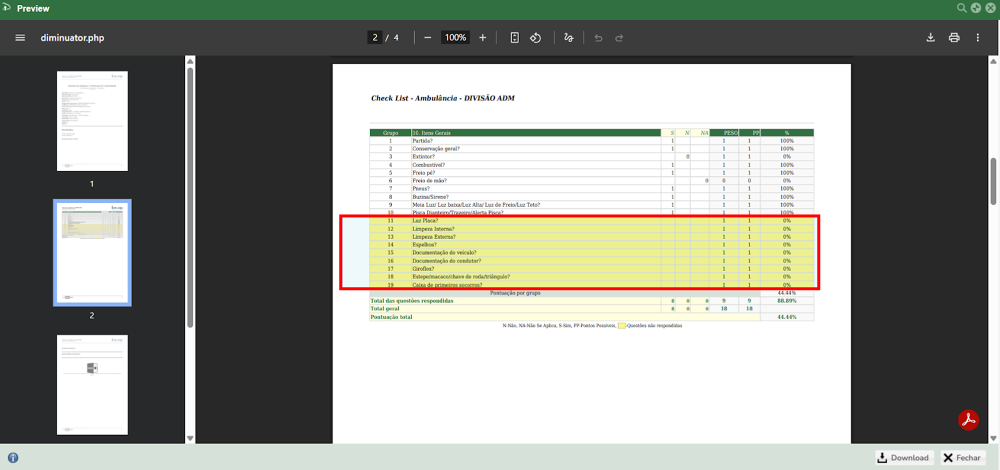 Foi incluído no relatório de inspeção as perguntas não respondidas durante a inspeção