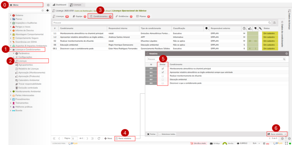 3- ir na aba condicionantes da licença que deseja obter o relatório