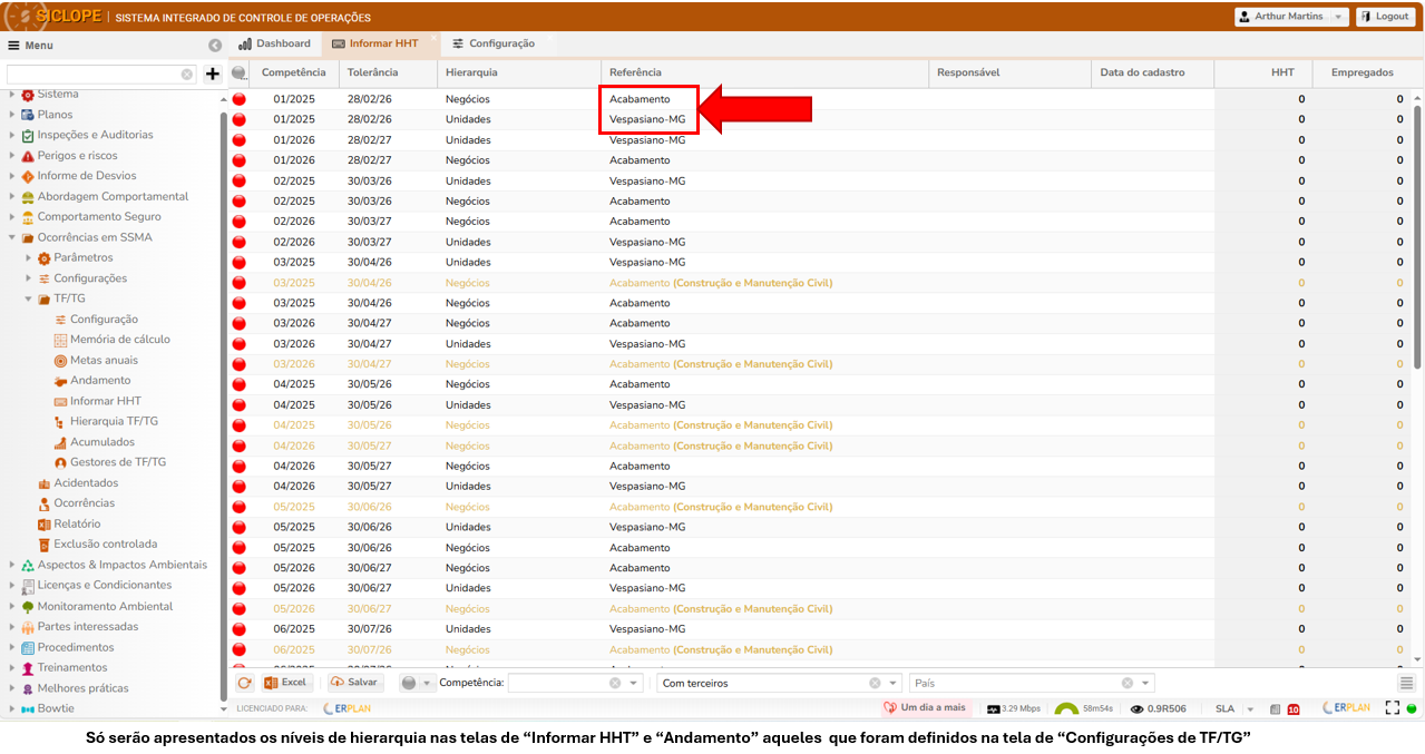 Permitir que o campo responsável por informar HHT na tela de Configuração de TF e TG seja deixado em branco. Dessa forma, unidades ou empresas que não precisam registrar HHT não serão exibidas nas telas de “Informar HHT” e de “Andamento de HHT”, garantindo uma visualização mais adequada e alinhada às necessidades de cada usuário. Só serão apresentados os nível de hierarquia nas telas de “Informar HHT” e “Andamento” aquelas que foram definidas na tela de configurações de TF/TG.