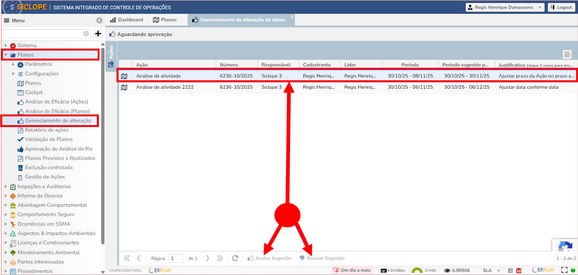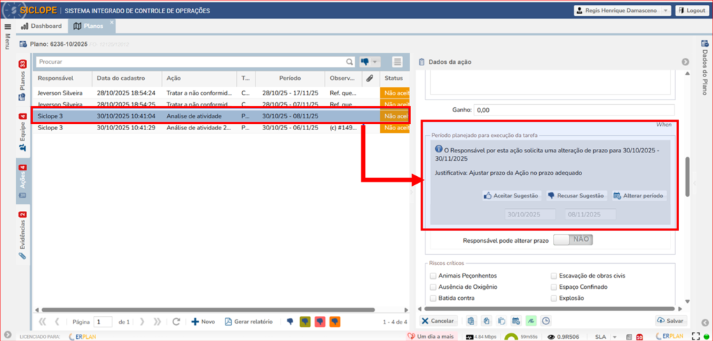 Ao acessar o plano que contém a ação, o sistema disponibilizará três opções de decisão: