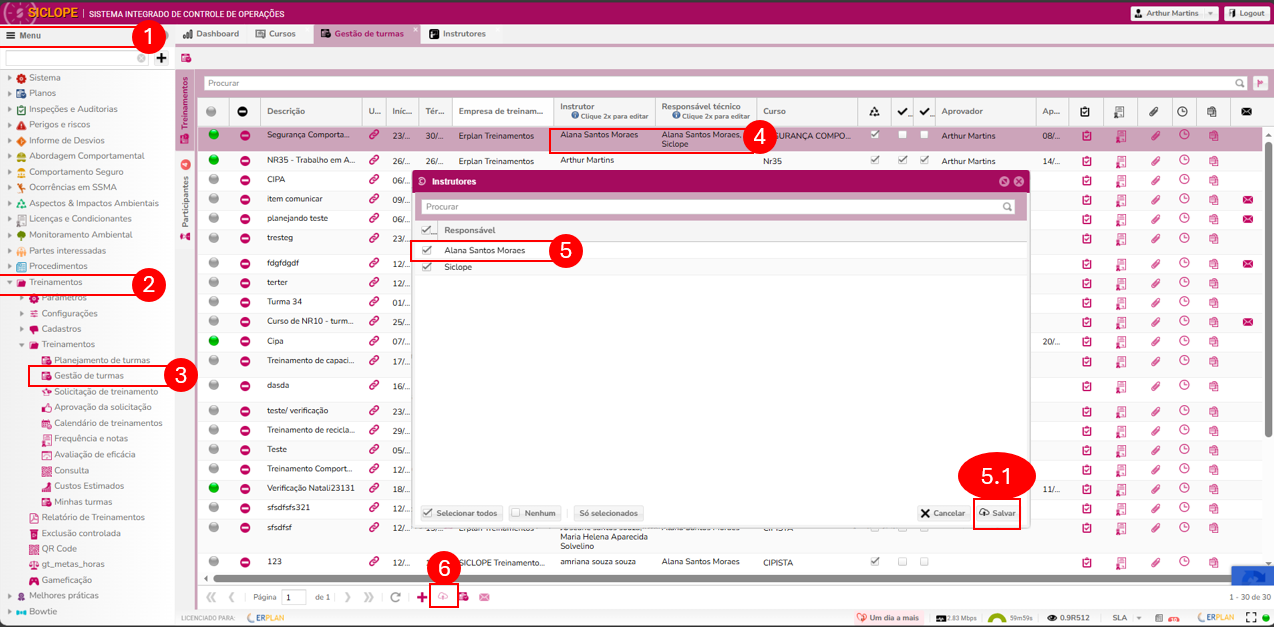 4. Clique 2x nas colunas “Instrutor” e “Responsável técnico”